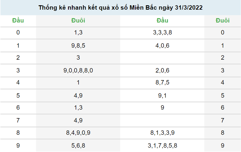 Thống kê soi cầu XSMB đưa ra cho anh em tổng hợp giải đặc biệt của 30 ngày qua cùng với đó là 10 cặp số về nhiều và loto gan tính đến ngày 1/4/2022, nhằm giúp anh em lựa chọn được những con số đẹp nhất của XSMB ngày 1/4/2022. Cụ thể như sau: