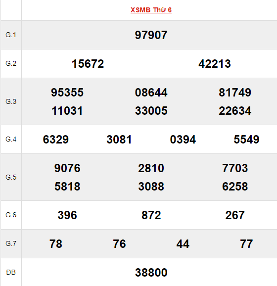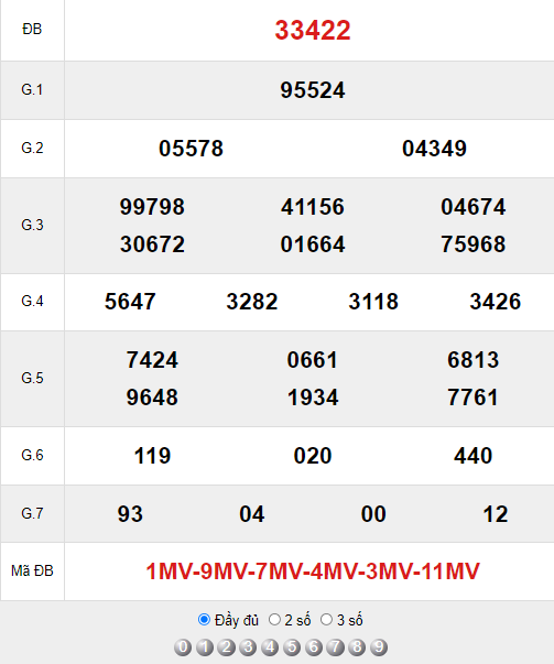 Xem lại bảng kết quả XSMB kì trước
