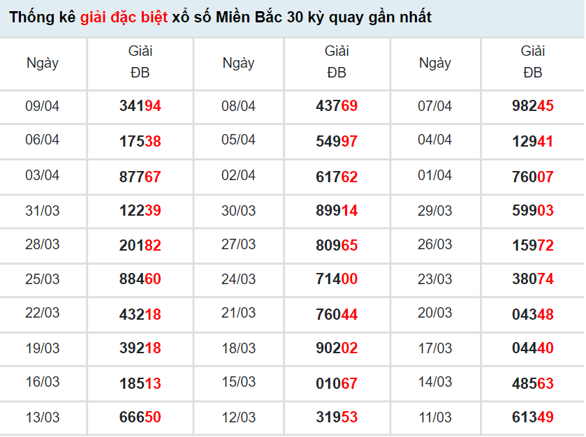 Thống kê lô kết quả XSMB hôm nay 12/4/2022 thứ 3