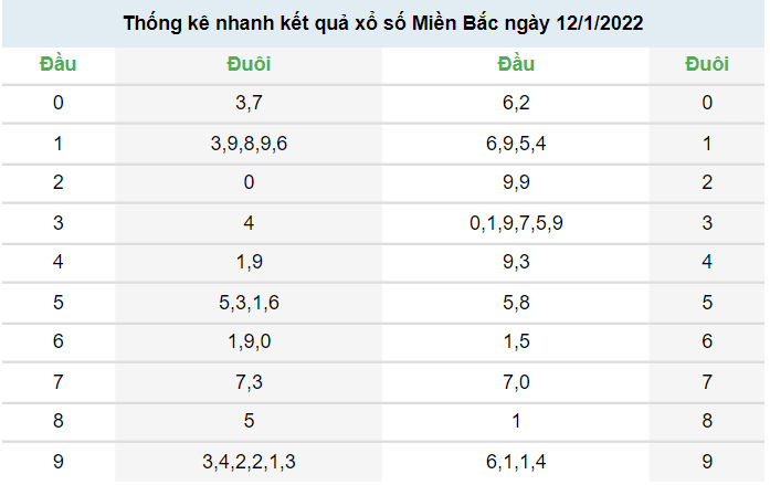 | 🌟 Đặc biệt: đầu, đuôi: 12 | ||