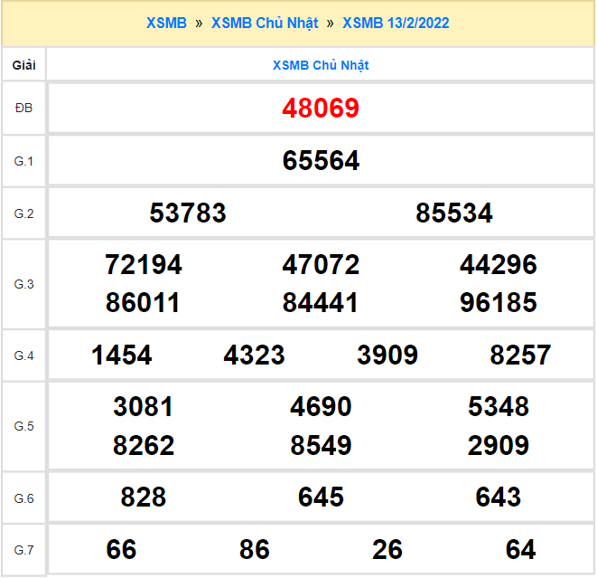 Các bạn có thể thử vận may tìm ra con số may mắn của mình bằng cách tham gia Quay thử XSMB. Bên dưới đây là bảng quay thử XSMB ngày 13/2/2022 mà chúng tôi đã thực hiện, mời bạn tham khảo: