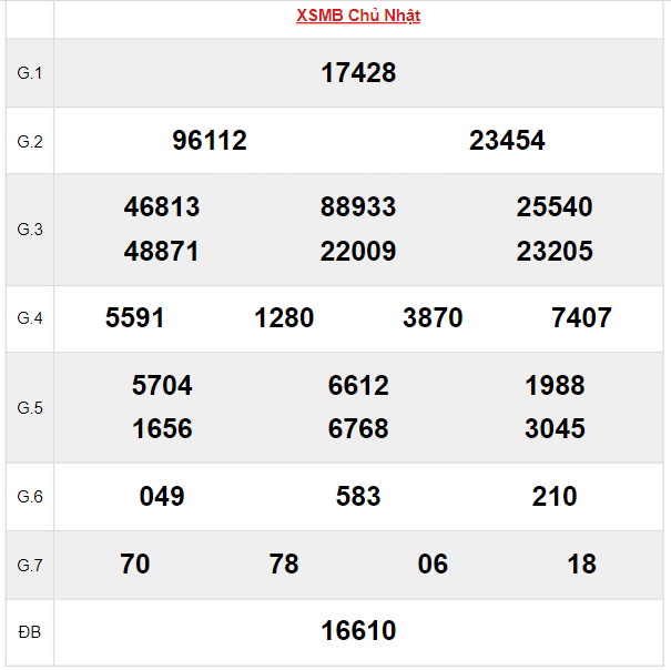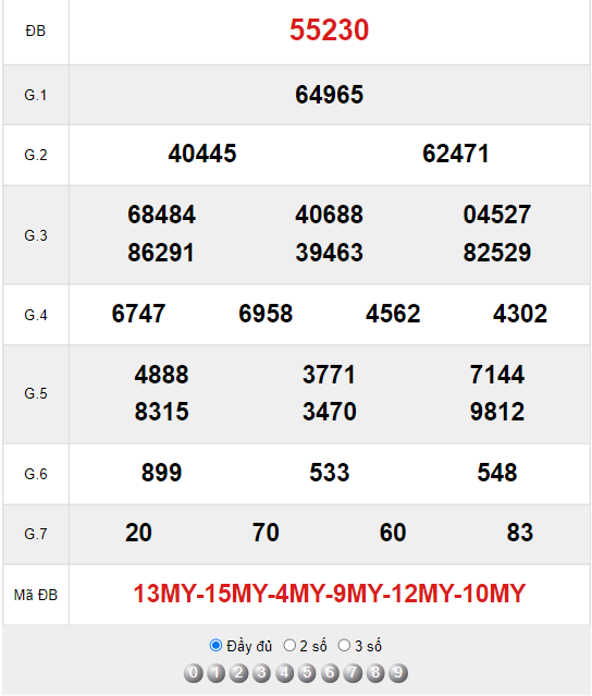 Xem lại bảng kết quả XSMB kì trước