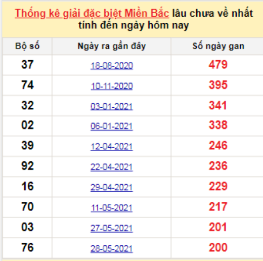 💰 Thống kê 2 số cuối GĐB lâu về nhất tính đến hôm nay: