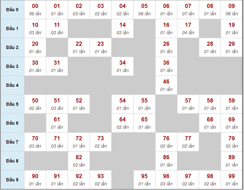 Cầu kẹp số xuất hiện là không có, tần suất lô rơi là .. lần/30 ngày trước đó.