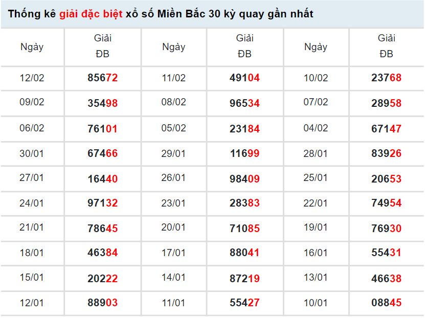 Xem lại bảng kết quả XSMB kì trước: