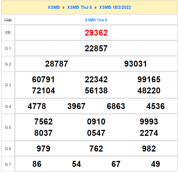 Các bạn có thể thử vận may tìm ra con số may mắn của mình bằng cách tham gia Quay thử XSMB. Bên dưới đây là bảng quay thử XSMB ngày 18/2/2022 mà chúng tôi đã thực hiện, mời bạn tham khảo: