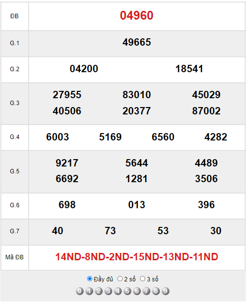 Xem lại bảng kết quả XSMB kì trước