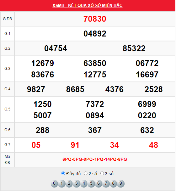 Xem lại bảng kết quả XSMB kì trước