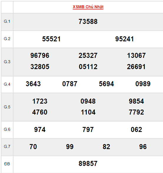 Xem lại bảng kết quả XSMB kì trước: