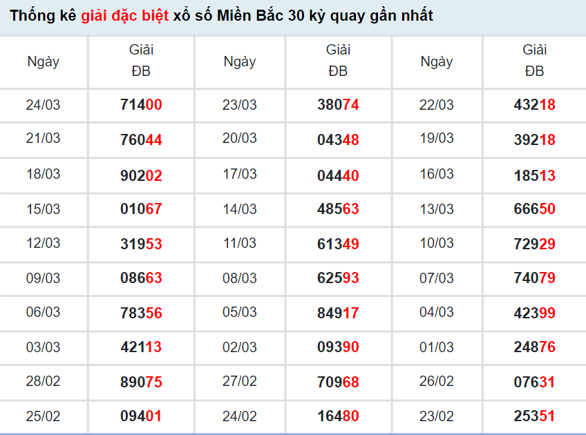 Dưới đây là những thống kê XSMB 27/3 gồm: Thống kê tần tần suất loto, thống kê lô gan, đặc biệt, lô kép, lô xiên chi tiết nhất trong 30 ngày qua để nhận biết quy luật về của các bộ số nhằm đưa ra dự đoán XSMB chính xác nhất và lựa chọn được cặp số đẹp trong ngày hôm nay.