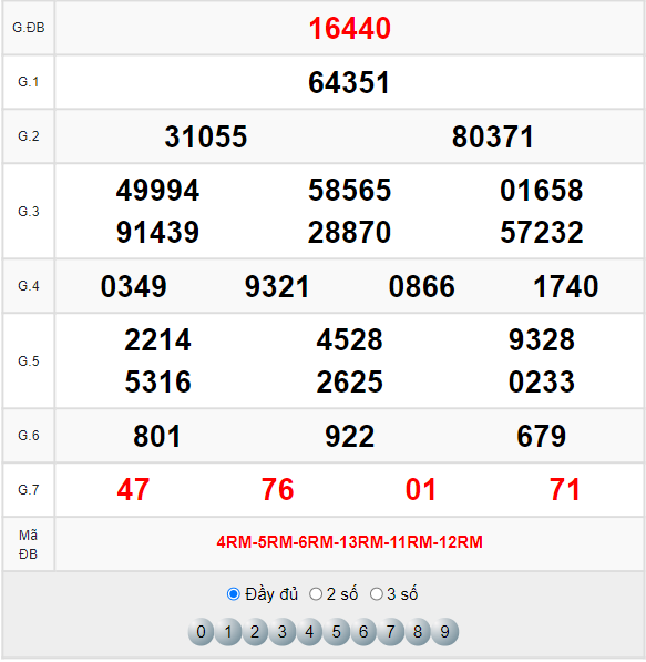 Xem lại bảng kết quả XSMB kì trước