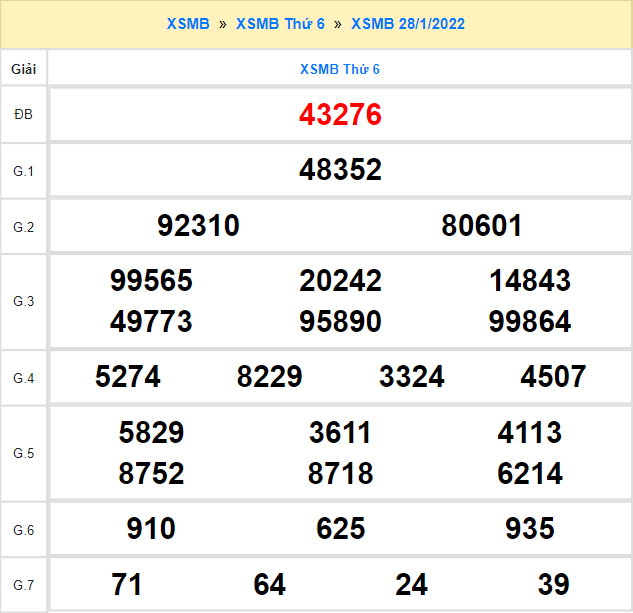 Cùng chuyên gia KETQUAXS dự đoán Miền Bắc 28/1/2022 hôm nay siêu chuẩn với các kết quả dự đoán giải đặt biệt đầu đuôi, giải lô tô 2 số, lô xiên chính xác nhất.