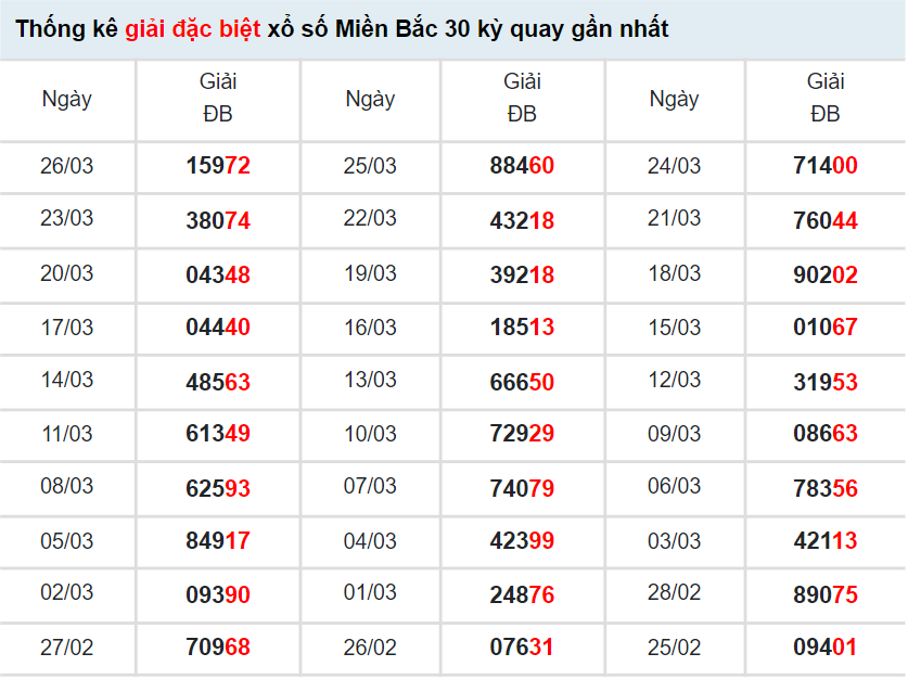 Dưới đây là những thống kê XSMB 29/3 gồm: Thống kê tần tần suất loto, thống kê lô gan, đặc biệt, lô kép, lô xiên chi tiết nhất trong 30 ngày qua để nhận biết quy luật về của các bộ số nhằm đưa ra dự đoán XSMB chính xác nhất và lựa chọn được cặp số đẹp trong ngày hôm nay.