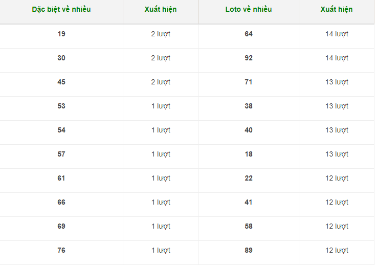 Các số về nhiều nhất trong 30 lần quay