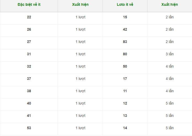 Các số Ít về trong 30 lần quay