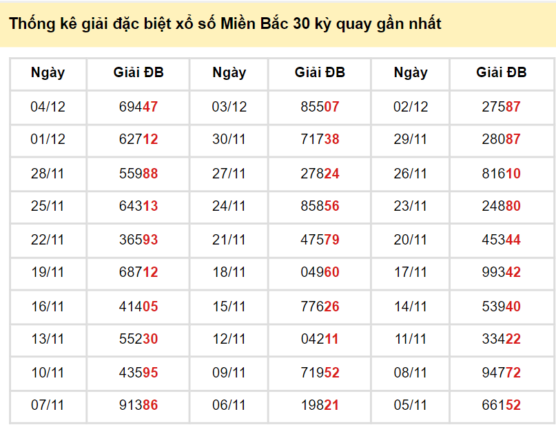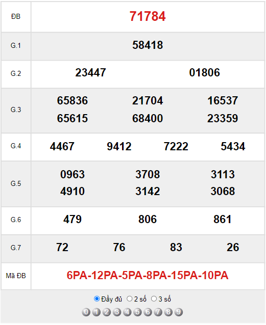 Xem lại bảng kết quả XSMB kì trước: