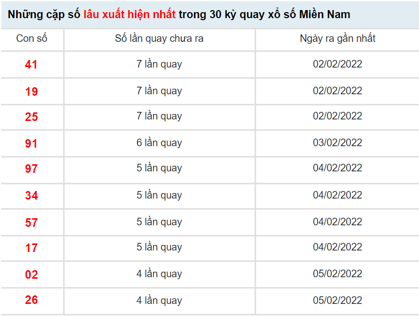 BÍ KÍP giúp KETQUAXS soi cầu XSMN 11/2/2022 và các ngày khác đều cho kết quả dự đoán chính xác nhất, TỈ LỆ trúng giải cao nhất là dựa trên kết quả XSMN ngày hôm trước và phương pháp xác suất thống kê chuyên sâu, các con số lâu ra nhất bạn chọn sẽ cho kết quả trúng thưởng đáng ngạt nhiên. Bạn có thể xem kết quả dự đoán XSMN ngày 11/2/2022 của KETQUAXS hoặc tham khảo kết quả thống kê giải đặt biệt XSMN và 10 cặp số xuất hiện nhiều nhất, xuất hiện ít nhất bên dưới để tự dự đoán kết quả XSMN hôm nay cho riêng mình.