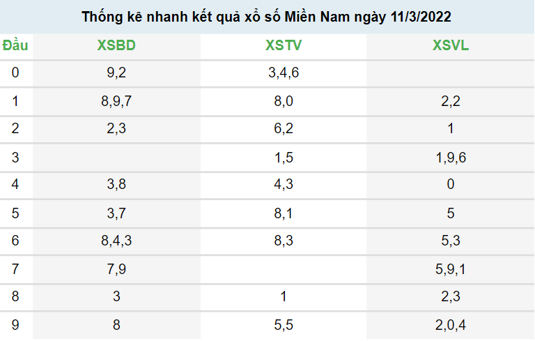 BÍ KÍP giúp KETQUAXS soi cầu XSMN 12/3/2022 và các ngày khác đều cho kết quả dự đoán chính xác nhất, TỈ LỆ trúng giải cao nhất là dựa trên kết quả XSMN ngày hôm trước và phương pháp xác suất thống kê chuyên sâu, các con số lâu ra nhất bạn chọn sẽ cho kết quả trúng thưởng đáng ngạt nhiên. Bạn có thể xem kết quả dự đoán XSMN ngày 12/3/2022 của KETQUAXS hoặc tham khảo kết quả thống kê giải đặt biệt XSMN và 10 cặp số xuất hiện nhiều nhất, xuất hiện ít nhất bên dưới để tự dự đoán kết quả XSMN hôm nay cho riêng mình.