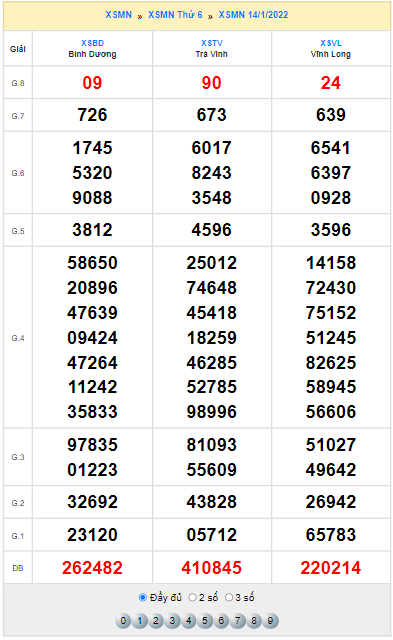 Chốt số lô dự đoán xổ số Trà Vinh 14/1/2022