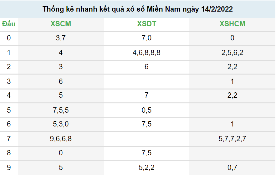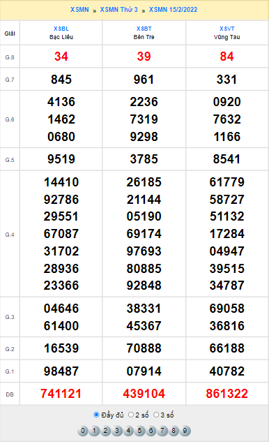 BÍ KÍP giúp KETQUAXS soi cầu XSMN 15/2/2022 và các ngày khác đều cho kết quả dự đoán chính xác nhất, TỈ LỆ trúng giải cao nhất là dựa trên kết quả XSMN ngày hôm trước và phương pháp xác suất thống kê chuyên sâu, các con số lâu ra nhất bạn chọn sẽ cho kết quả trúng thưởng đáng ngạt nhiên. Bạn có thể xem kết quả dự đoán XSMN ngày 15/2/2022 của KETQUAXS hoặc tham khảo kết quả thống kê giải đặt biệt XSMN và 10 cặp số xuất hiện nhiều nhất, xuất hiện ít nhất bên dưới để tự dự đoán kết quả XSMN hôm nay cho riêng mình.