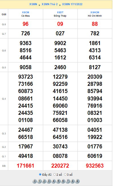 Dự Đoán Miền Nam 17/1/2022