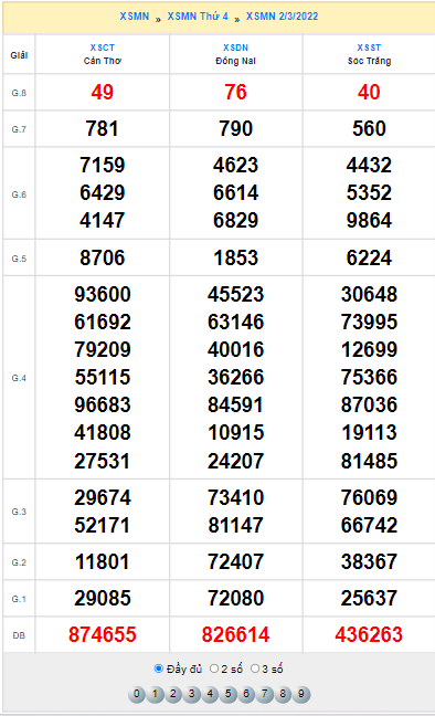 BÍ KÍP giúp KETQUAXS soi cầu XSMN 2/3/2022 và các ngày khác đều cho kết quả dự đoán chính xác nhất, TỈ LỆ trúng giải cao nhất là dựa trên kết quả XSMN ngày hôm trước và phương pháp xác suất thống kê chuyên sâu, các con số lâu ra nhất bạn chọn sẽ cho kết quả trúng thưởng đáng ngạt nhiên. Bạn có thể xem kết quả dự đoán XSMN ngày 2/3/2022 của KETQUAXS hoặc tham khảo kết quả thống kê giải đặt biệt XSMN và 10 cặp số xuất hiện nhiều nhất, xuất hiện ít nhất bên dưới để tự dự đoán kết quả XSMN hôm nay cho riêng mình.