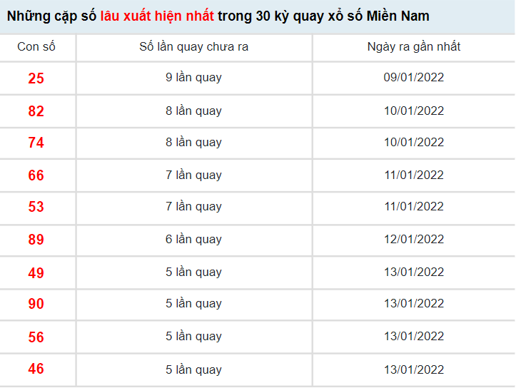 BÍ KÍP giúp KETQUAXS soi cầu XSMN 20/1/2022 và các ngày khác đều cho kết quả dự đoán chính xác nhất, TỈ LỆ trúng giải cao nhất là dựa trên kết quả XSMN ngày hôm trước và phương pháp xác suất thống kê chuyên sâu, các con số lâu ra nhất bạn chọn sẽ cho kết quả trúng thưởng đáng ngạt nhiên. Bạn có thể xem kết quả dự đoán XSMN ngày 20/1/2022 của KETQUAXS hoặc tham khảo kết quả thống kê giải đặt biệt XSMN và 10 cặp số xuất hiện nhiều nhất, xuất hiện ít nhất bên dưới để tự dự đoán kết quả XSMN hôm nay cho riêng mình.