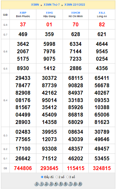 BÍ KÍP giúp KETQUAXS soi cầu XSMN 22/1/2022 và các ngày khác đều cho kết quả dự đoán chính xác nhất, TỈ LỆ trúng giải cao nhất là dựa trên kết quả XSMN ngày hôm trước và phương pháp xác suất thống kê chuyên sâu, các con số lâu ra nhất bạn chọn sẽ cho kết quả trúng thưởng đáng ngạt nhiên. Bạn có thể xem kết quả dự đoán XSMN ngày 22/1/2022 của KETQUAXS hoặc tham khảo kết quả thống kê giải đặt biệt XSMN và 10 cặp số xuất hiện nhiều nhất, xuất hiện ít nhất bên dưới để tự dự đoán kết quả XSMN hôm nay cho riêng mình.