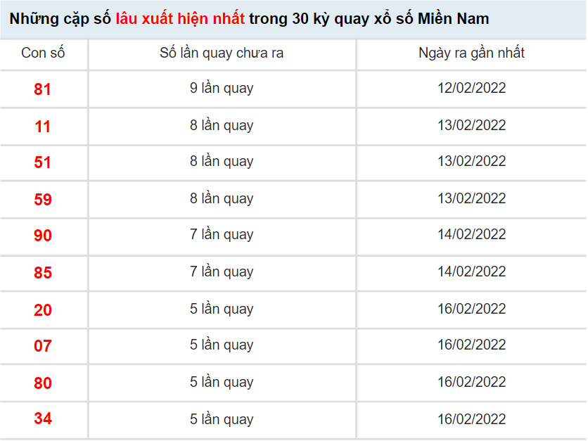 BÍ KÍP giúp KETQUAXS soi cầu XSMN 23/2/2022 và các ngày khác đều cho kết quả dự đoán chính xác nhất, TỈ LỆ trúng giải cao nhất là dựa trên kết quả XSMN ngày hôm trước và phương pháp xác suất thống kê chuyên sâu, các con số lâu ra nhất bạn chọn sẽ cho kết quả trúng thưởng đáng ngạt nhiên. Bạn có thể xem kết quả dự đoán XSMN ngày 23/2/2022 của KETQUAXS hoặc tham khảo kết quả thống kê giải đặt biệt XSMN và 10 cặp số xuất hiện nhiều nhất, xuất hiện ít nhất bên dưới để tự dự đoán kết quả XSMN hôm nay cho riêng mình.