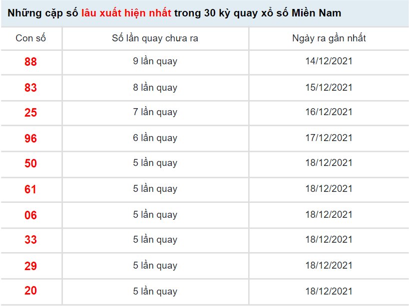 BÍ KÍP giúp KETQUAXS soi cầu XSMN 24/12/2021 và các ngày khác đều cho kết quả dự đoán chính xác nhất, TỈ LỆ trúng giải cao nhất là dựa trên kết quả XSMN ngày hôm trước và phương pháp xác suất thống kê chuyên sâu, các con số lâu ra nhất bạn chọn sẽ cho kết quả trúng thưởng đáng ngạt nhiên. Bạn có thể xem kết quả dự đoán XSMN ngày 24/12/2021 của KETQUAXS hoặc tham khảo kết quả thống kê giải đặt biệt XSMN và 10 cặp số xuất hiện nhiều nhất, xuất hiện ít nhất bên dưới để tự dự đoán kết quả XSMN hôm nay cho riêng mình.