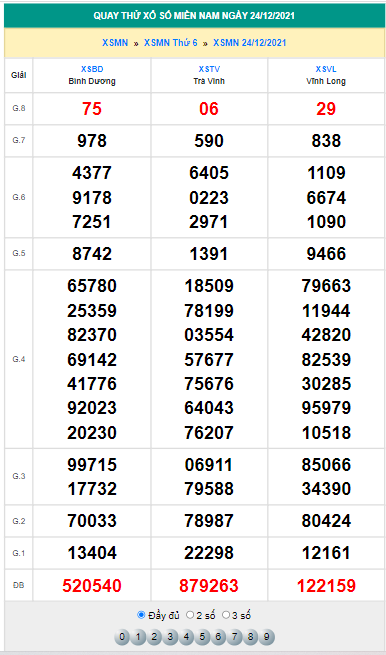 Chốt số lô dự đoán xổ số Trà Vinh 24/12/2021