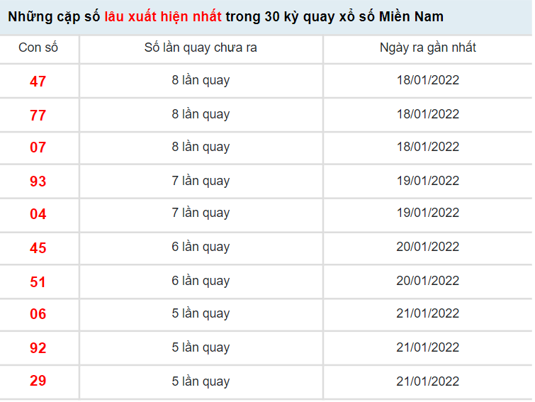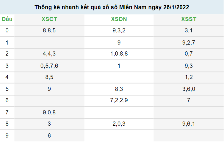 BÍ KÍP giúp KETQUAXS soi cầu XSMN 27/1/2022 và các ngày khác đều cho kết quả dự đoán chính xác nhất, TỈ LỆ trúng giải cao nhất là dựa trên kết quả XSMN ngày hôm trước và phương pháp xác suất thống kê chuyên sâu, các con số lâu ra nhất bạn chọn sẽ cho kết quả trúng thưởng đáng ngạt nhiên. Bạn có thể xem kết quả dự đoán XSMN ngày 27/1/2022 của KETQUAXS hoặc tham khảo kết quả thống kê giải đặt biệt XSMN và 10 cặp số xuất hiện nhiều nhất, xuất hiện ít nhất bên dưới để tự dự đoán kết quả XSMN hôm nay cho riêng mình.