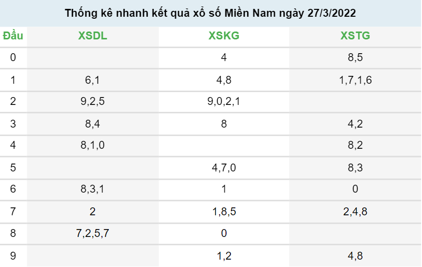 Thống kê xổ số miền Nam 28/3/2022