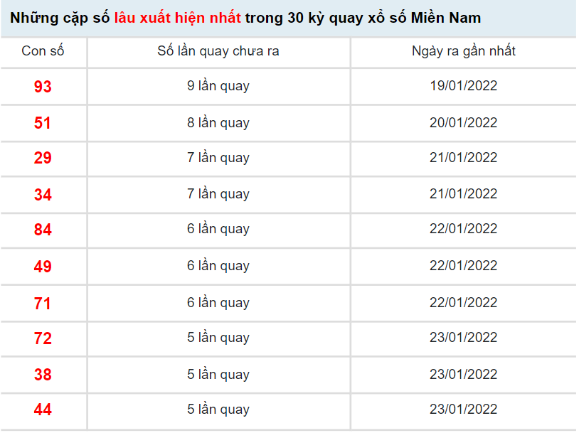 BÍ KÍP giúp KETQUAXS soi cầu XSMN 29/1/2022 và các ngày khác đều cho kết quả dự đoán chính xác nhất, TỈ LỆ trúng giải cao nhất là dựa trên kết quả XSMN ngày hôm trước và phương pháp xác suất thống kê chuyên sâu, các con số lâu ra nhất bạn chọn sẽ cho kết quả trúng thưởng đáng ngạt nhiên. Bạn có thể xem kết quả dự đoán XSMN ngày 29/1/2022 của KETQUAXS hoặc tham khảo kết quả thống kê giải đặt biệt XSMN và 10 cặp số xuất hiện nhiều nhất, xuất hiện ít nhất bên dưới để tự dự đoán kết quả XSMN hôm nay cho riêng mình.