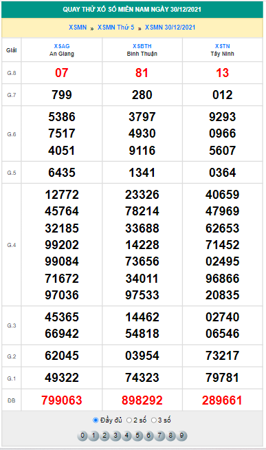 Các bạn có thể thử vận may tìm ra con số may mắn của mình bằng cách tham gia Quay thử XSMN. Bên dưới đây là bảng quay thử XSMN ngày 30/12/2021 mà chúng tôi đã thực hiện, mời bạn tham khảo: