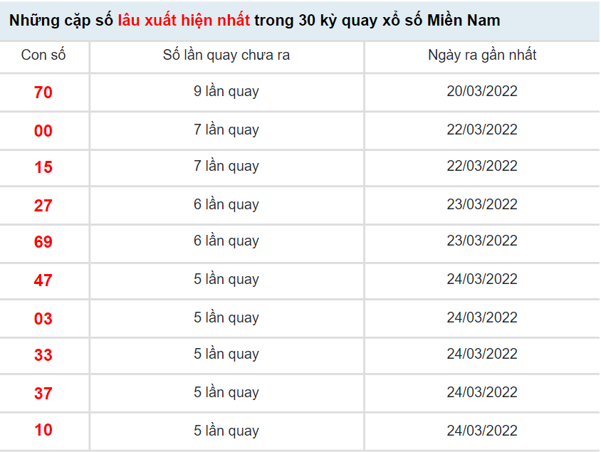 Thống kê xổ số miền Nam tổng hợp thông tin của những bộ số đầu đuôi lô tô, giải ĐB, giải tám xuất hiện trong thời gian gần giúp anh em có thể dự đoán MN chính xác nhất trước khi lựa chọn cặp số cho ngày hôm nay.