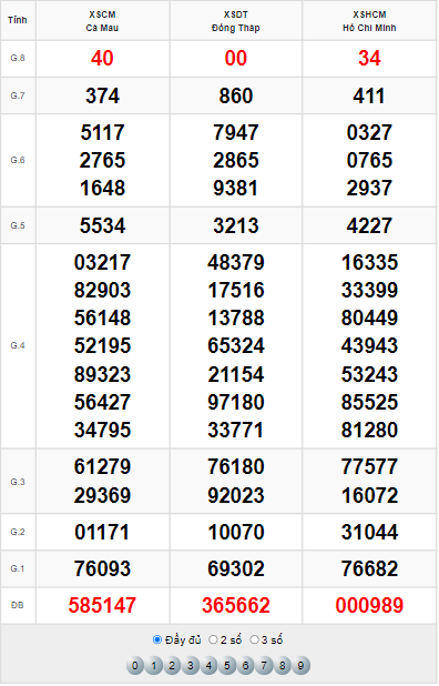Xem lại bảng kết quả XSMN kì trước
