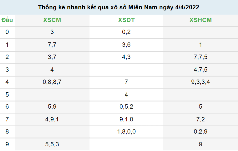 BÍ KÍP giúp KETQUAXS soi cầu XSMN hôm nay 5/4/2022 và các ngày khác đều cho kết quả dự đoán chính xác nhất, TỈ LỆ trúng giải cao nhất là dựa trên kết quả XSMN ngày hôm trước và phương pháp xác suất thống kê chuyên sâu, các con số lâu ra nhất bạn chọn sẽ cho kết quả trúng thưởng đáng ngạt nhiên. Bạn có thể xem kết quả dự đoán XSMN ngày 5/4/2022 của KETQUAXS hoặc tham khảo kết quả thống kê giải đặt biệt xổ số miền Nam và 10 cặp số xuất hiện nhiều nhất, xuất hiện ít nhất bên dưới để tự dự đoán kết quả XSMN hôm nay cho riêng mình.
