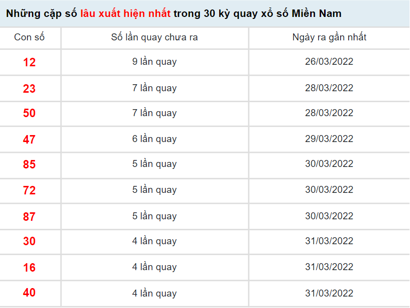 Thống kê SXMN đưa ra cho anh em tổng hợp giải đặc biệt của 30 ngày qua cùng với đó là 10 cặp số về nhiều và loto gan tính đến XSMN hôm nay 5/4/2022, nhằm giúp anh em lựa chọn được những con số đẹp nhất của ngày hôm nay. Cụ thể như sau: