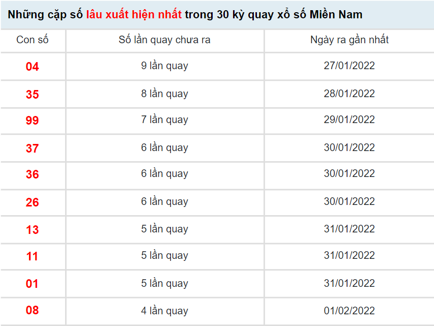 BÍ KÍP giúp KETQUAXS soi cầu XSMN 6/2/2022 và các ngày khác đều cho kết quả dự đoán chính xác nhất, TỈ LỆ trúng giải cao nhất là dựa trên kết quả XSMN ngày hôm trước và phương pháp xác suất thống kê chuyên sâu, các con số lâu ra nhất bạn chọn sẽ cho kết quả trúng thưởng đáng ngạt nhiên. Bạn có thể xem kết quả dự đoán XSMN ngày 6/2/2022 của KETQUAXS hoặc tham khảo kết quả thống kê giải đặt biệt XSMN và 10 cặp số xuất hiện nhiều nhất, xuất hiện ít nhất bên dưới để tự dự đoán kết quả XSMN hôm nay cho riêng mình.