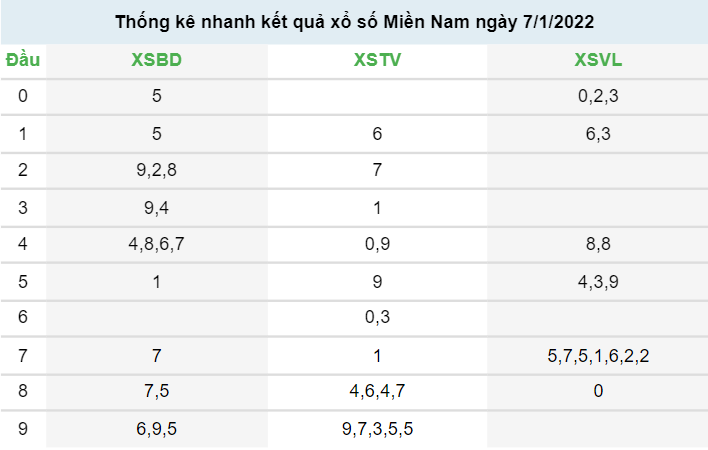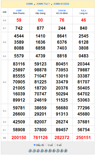 BÍ KÍP giúp KETQUAXS soi cầu XSMN 8/1/2022 và các ngày khác đều cho kết quả dự đoán chính xác nhất, TỈ LỆ trúng giải cao nhất là dựa trên kết quả XSMN ngày hôm trước và phương pháp xác suất thống kê chuyên sâu, các con số lâu ra nhất bạn chọn sẽ cho kết quả trúng thưởng đáng ngạt nhiên. Bạn có thể xem kết quả dự đoán XSMN ngày 8/1/2022 của KETQUAXS hoặc tham khảo kết quả thống kê giải đặt biệt XSMN và 10 cặp số xuất hiện nhiều nhất, xuất hiện ít nhất bên dưới để tự dự đoán kết quả XSMN hôm nay cho riêng mình.
