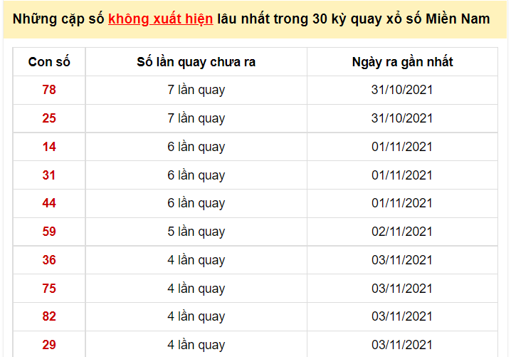 BÍ KÍP giúp KETQUAXS soi cầu XSMN 8/11/2021 và các ngày khác đều cho kết quả dự đoán chính xác nhất, TỈ LỆ trúng giải cao nhất là dựa trên kết quả XSMN ngày hôm trước và phương pháp xác suất thống kê chuyên sâu, các con số lâu ra nhất bạn chọn sẽ cho kết quả trúng thưởng đáng ngạt nhiên. Bạn có thể xem kết quả dự đoán XSMN ngày 8/11/2021 của KETQUAXS hoặc tham khảo kết quả thống kê giải đặt biệt XSMN và 10 cặp số xuất hiện nhiều nhất, xuất hiện ít nhất bên dưới để tự dự đoán kết quả XSMN hôm nay cho riêng mình.