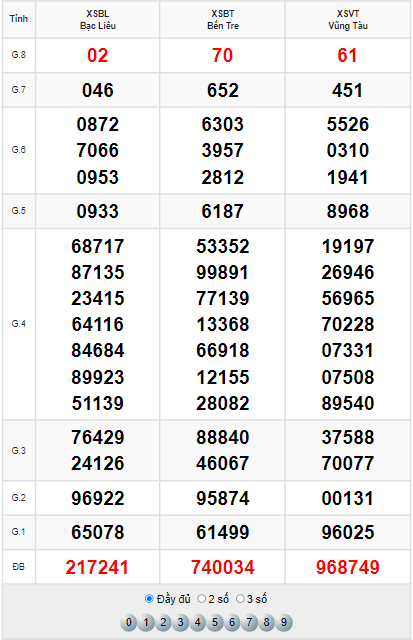 | 🌟 Đặc biệt: đầu, đuôi: 61 | ||