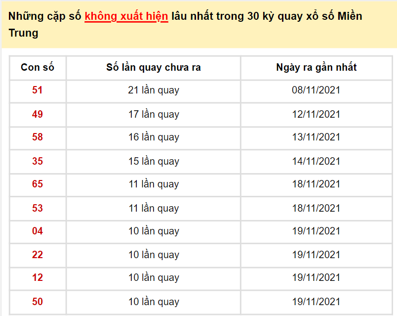BÍ KÍP giúp KETQUAXS soi cầu Miền Trung 1/12/2021 và các ngày khác đều cho kết quả dự đoán chính xác nhất, TỈ LỆ trúng giải cao nhất là dựa trên kết quả Miền Trung ngày hôm trước và phương pháp xác suất thống kê chuyên sâu, các con số lâu ra nhất bạn chọn sẽ cho kết quả trúng thưởng đáng ngạt nhiên. Bạn có thể xem kết quả dự đoán Miền Trung ngày 1/12/2021 củaKETQUAXS hoặc tham khảo kết quả thống kê giải đặt biệt Miền Trung và 10 cặp số xuất hiện nhiều nhất, xuất hiện ít nhất bên dưới để tự dự đoán kết quả Miền Trung hôm nay cho riêng mình.