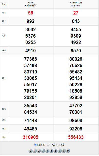 Xem lại bảng kết quả XSMT kì trước