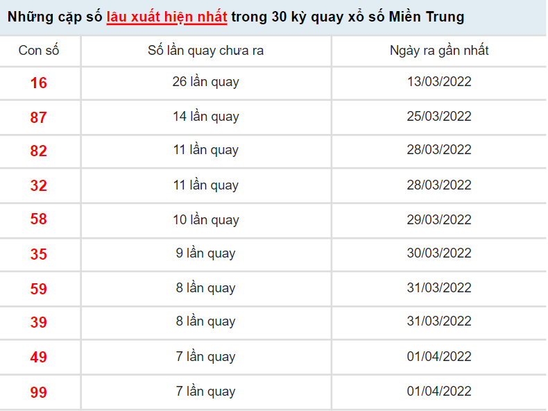 Thống kê kết quả xổ số miền Trung tổng hợp thông tin của những bộ số lô tô về nhiều, về ít, giải ĐB về nhiều, lô gan, giải tám xuất hiện trong thời gian gần giúp anh em có thể dự đoán MT chính xác nhất trước khi lựa chọn cặp số cho ngày hôm nay.