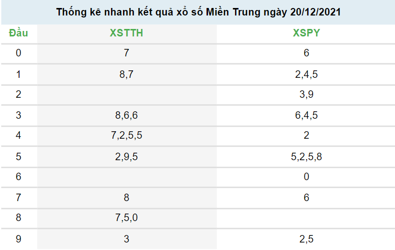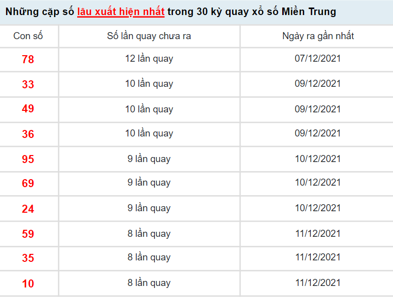 BÍ KÍP giúp KETQUAXS soi cầu XSMT 21/12/2021 và các ngày khác đều cho kết quả dự đoán chính xác nhất, TỈ LỆ trúng giải cao nhất là dựa trên kết quả XSMT ngày hôm trước và phương pháp xác suất thống kê chuyên sâu, các con số lâu ra nhất bạn chọn sẽ cho kết quả trúng thưởng đáng ngạt nhiên. Bạn có thể xem kết quả dự đoán XSMT ngày 21/12/2021 của KETQUAXS hoặc tham khảo kết quả thống kê giải đặt biệt XSMT và 10 cặp số xuất hiện nhiều nhất, xuất hiện ít nhất bên dưới để tự dự đoán kết quả XSMT hôm nay cho riêng mình.