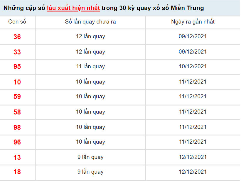 BÍ KÍP giúp KETQUAXS soi cầu XSMT 23/12/2021 và các ngày khác đều cho kết quả dự đoán chính xác nhất, TỈ LỆ trúng giải cao nhất là dựa trên kết quả XSMT ngày hôm trước và phương pháp xác suất thống kê chuyên sâu, các con số lâu ra nhất bạn chọn sẽ cho kết quả trúng thưởng đáng ngạt nhiên. Bạn có thể xem kết quả dự đoán XSMT ngày 23/12/2021 của KETQUAXS hoặc tham khảo kết quả thống kê giải đặt biệt XSMT và 10 cặp số xuất hiện nhiều nhất, xuất hiện ít nhất bên dưới để tự dự đoán kết quả XSMT hôm nay cho riêng mình.