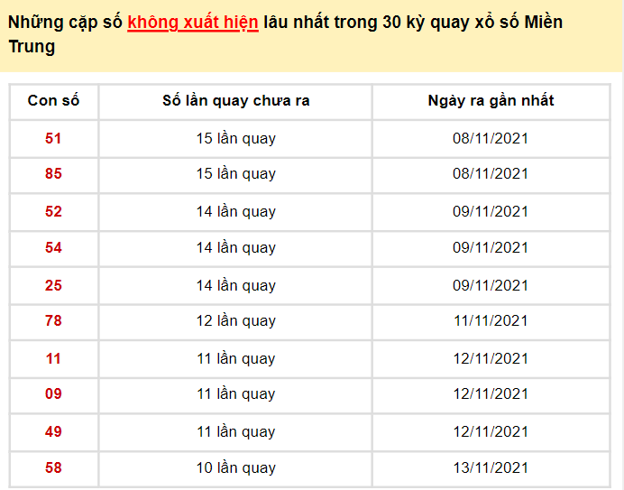 BÍ KÍP giúp KETQUAXS soi cầu Miền Trung 25/11/2021 và các ngày khác đều cho kết quả dự đoán chính xác nhất, TỈ LỆ trúng giải cao nhất là dựa trên kết quả Miền Trung ngày hôm trước và phương pháp xác suất thống kê chuyên sâu, các con số lâu ra nhất bạn chọn sẽ cho kết quả trúng thưởng đáng ngạt nhiên. Bạn có thể xem kết quả dự đoán Miền Trung ngày 25/11/2021 của KETQUAXS hoặc tham khảo kết quả thống kê giải đặt biệt Miền Trung và 10 cặp số xuất hiện nhiều nhất, xuất hiện ít nhất bên dưới để tự dự đoán kết quả Miền Trung hôm nay cho riêng mình.