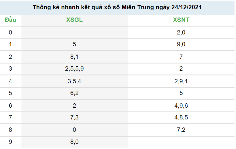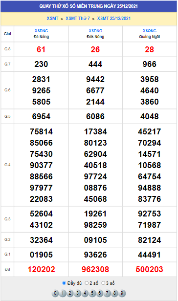 Dự Đoán Miền Trung 25/12/2021